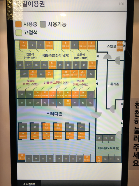 ✅ 화장실 남녀 구분, 스터디룸 남녀 구분, 2024년 키오스크 메인보드 교체, 개인석 문 31개 교체